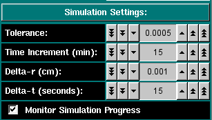 Simulation Settings These settings allow you to control the simulation. This value is the tolerance setting that determines if a scan has reached equilibrium. Successive scans are subtracted from each other and the differences between them are summed up. If the sum is less or equal to this tolerance value, the program will consider the speed equilibrated and automatically proceed to the next speed. For a 3 mm column with 0.001 cm resolution the accuracy of the computer allows about 1.0x10-5 for the smallest practical tolerance (noise-free data). This is the time between successive scans. The larger the time difference, the coarser is the time determineation, but the more reliable is the time estimation. A good default setting is 15 minutes, to be used with a 5 x 10-4 tolerance setting. This is the radial resolution used in the finite element analysis and defines the radial discretization step size. A good default value is 0.001 cm, the lowest possible setting in the XLA. This is the time resolution used in the finite element analysis and defines the time discretization step size. A good default value is 15 seconds, since changes over time are rather slow, especially in the end. Show all intermediate scans, otherwise only plot the equilibrium scans. |