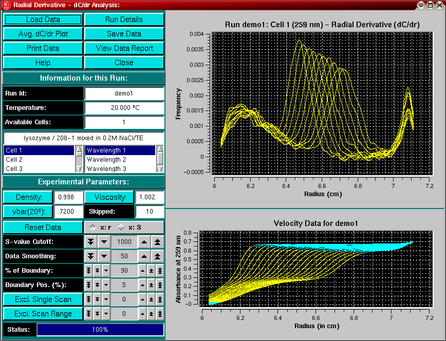 of the main menu. The main Radial Derivative Data