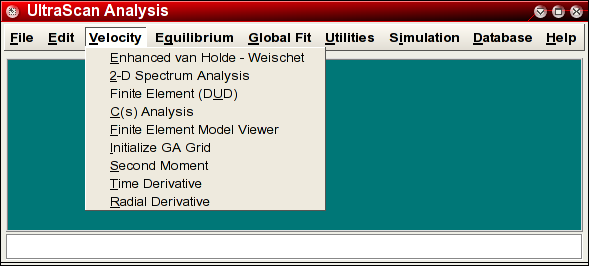 You start the Radial Derivative data analysis by clicking on "Radial Derivative" in the Velocity sub-menu