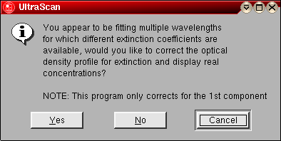 Only the setting for the log of the association constant in absorbance units is used for the fit, however, since a log of the value naturally constraines the amplitude to be positive. Negative values for the amplitude are physically nonsensical. Depending on the model and stoichiometry chosen, the units will be changed as well. Another effect of entering a molar extinction coefficient is that you can display concentration histograms in molar units. If the scans included in the fit were measured at different wavelengths, the program allows you to select concentration (molar) units or optical density measurements.