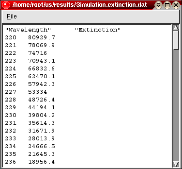 Extinction | If the mouse button is clicked and dragged through the plot area, this field will show the extinction calculation corresponding to the current wavelength coordinate. |