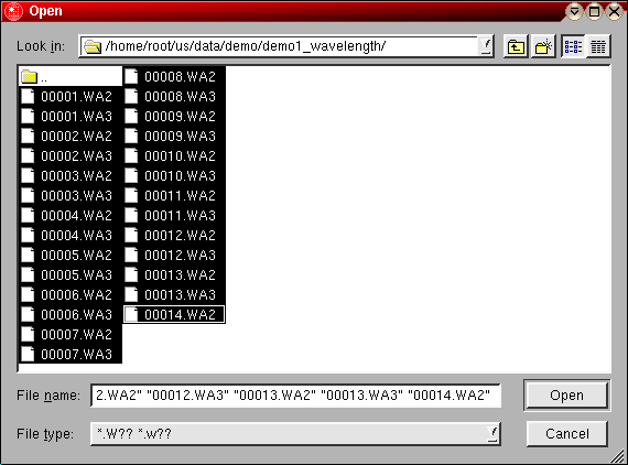 Add Wavelength Scanfile | Click here to add new scanfiles to the fit. You will need at least two scanfiles for a global fit. The more scan information is available, the more reliable will be the fit. Try to include scanfiles covering each wavelength of interest with multiple concentrations in a range where the XLA spectrophotometer provides linear output (typically 0.0 - 0.9 OD). You can select multiple files at once in the filedialog. Both uppercase and lowercase wavelength scans will be listed. |