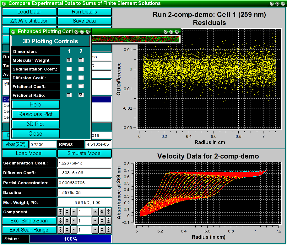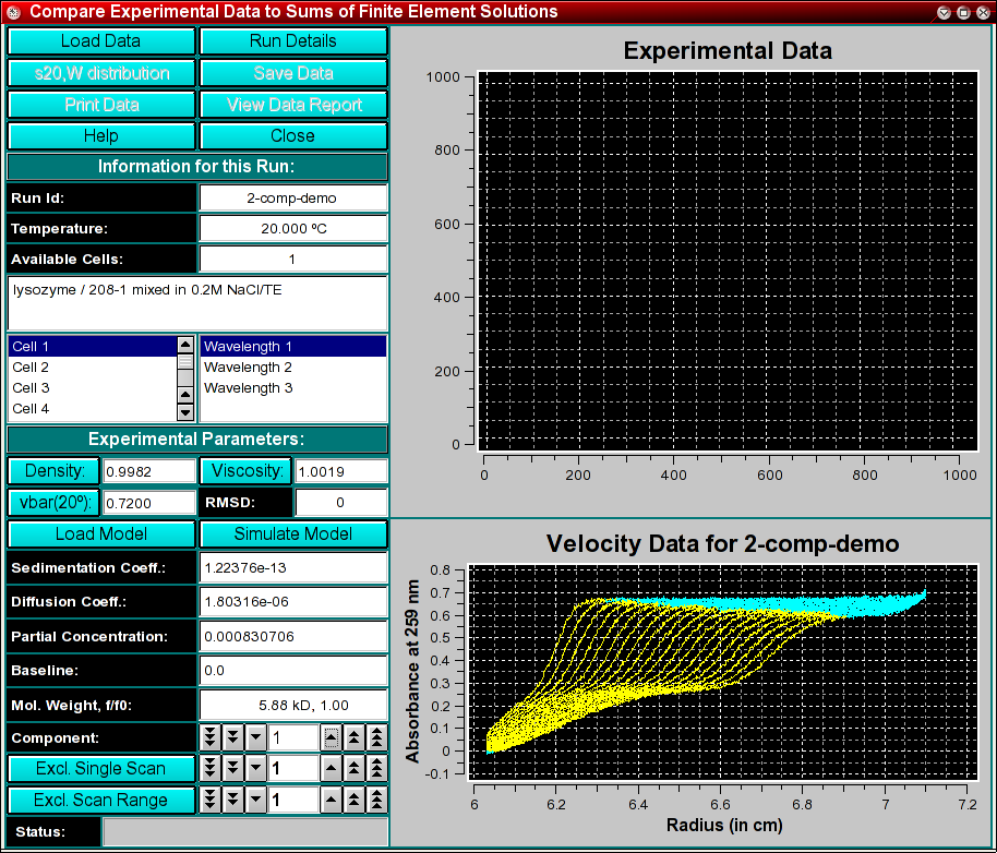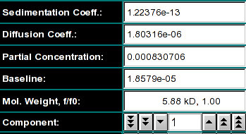 in the model. Shown are the molecular weight, the sedimentation- and diffusion