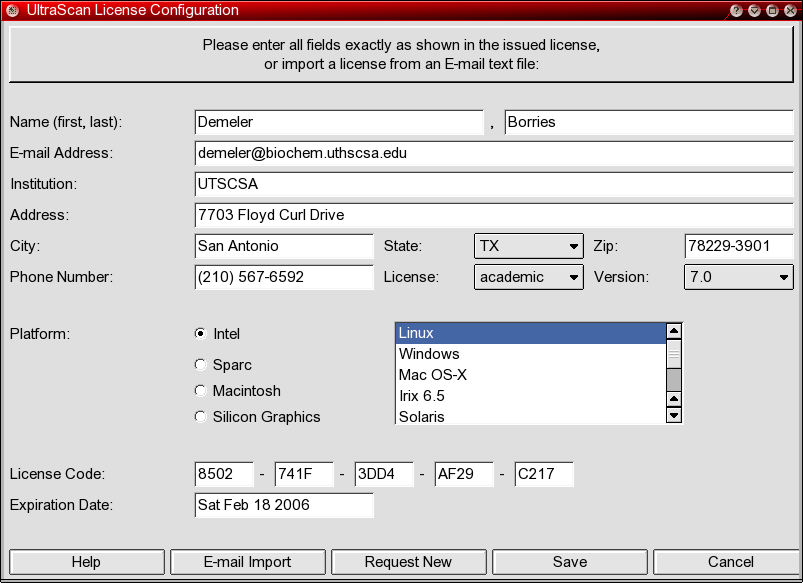 key for the UltraScan software. In order to use UltraScan a valid license key is