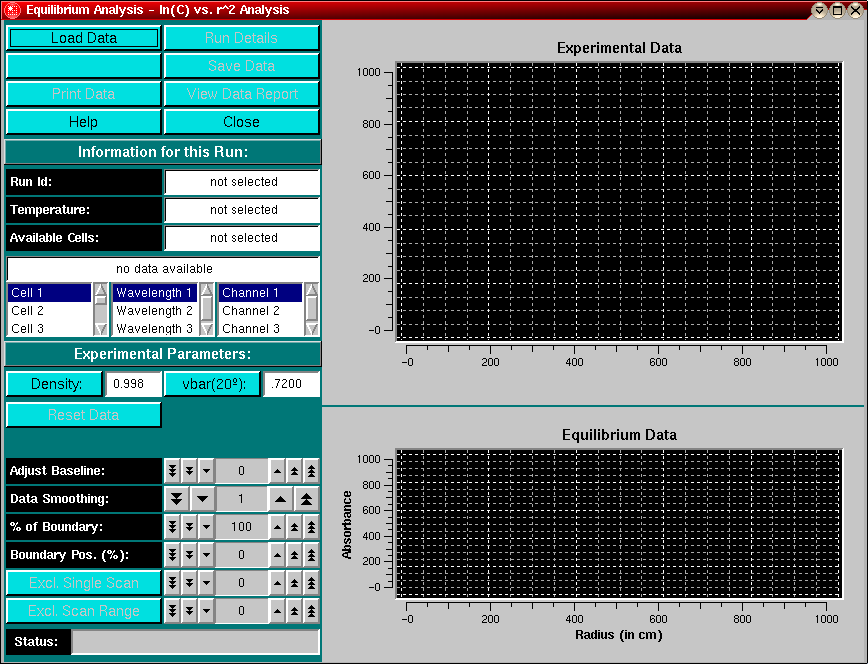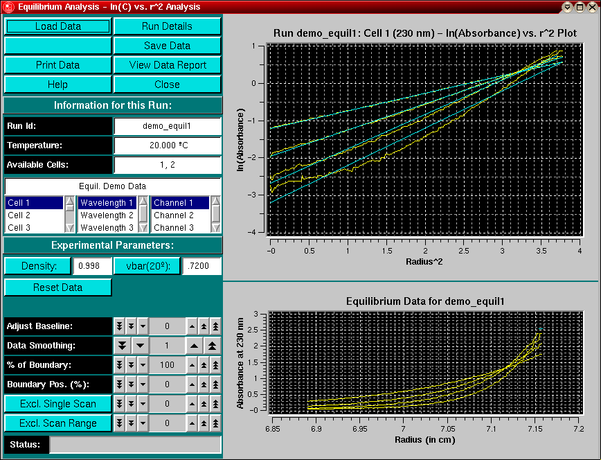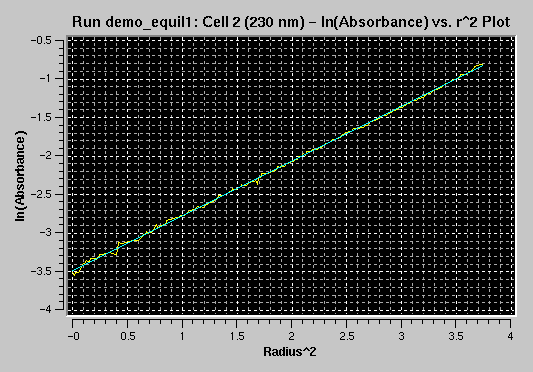 of UltraScan. This will display the the Ln(C) vs. r 2 data analysis window.