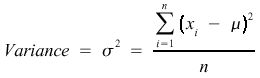 Variables used: u is the mean data value (see below), N refers to the number of observations, and xi is the observation i.