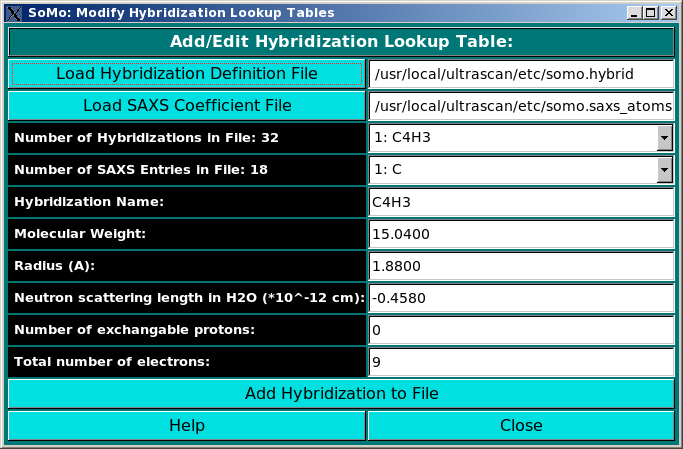 radius) loaded from the hybridization table. In addition, for SAXS simulation