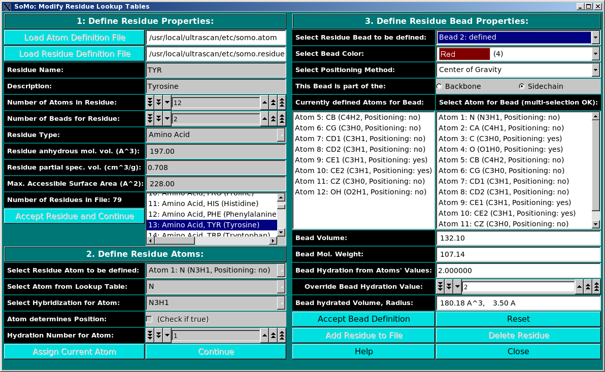 On launching, US-SOMO will automatically load the last used lookup table (default: somo.residue),
