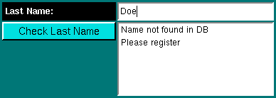 To check if an investigator name is already stored in the database, enter the last name in the "Last Name" field and click on "Check Last Name". If the name is not found, an error message will be shown. In that case, enter all contact information and click on "Commit" to store the record in the database. Clicking on "Check Last Name" when no name has been entered in the "Last Name" field causes all available records to be retrieved and displayed in the listbox.