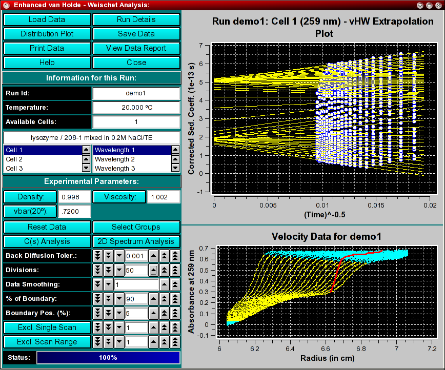 Click on these buttons to control the enhanced van Holde - Weischet analysis.