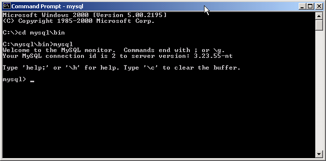 Open a Command Prompt window. Once it opens at the prompt enter the MySQL directory and type 'mysql'